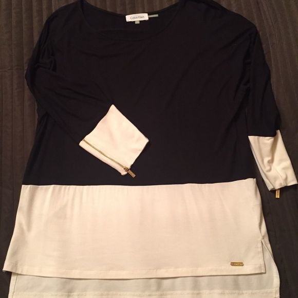 Black and White Calvin Klein top. Very good condition. No signs of wear! Size S, but will fit M as well.