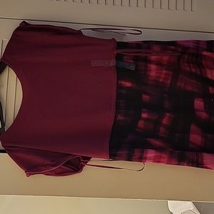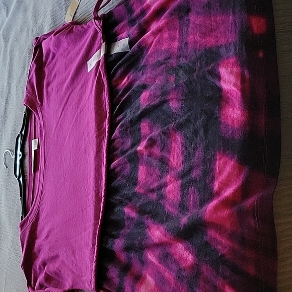 DKNY multi color; burgundy, black and pink top with drawstring waist. In good condition never been worn. Tags still on the shirt.
