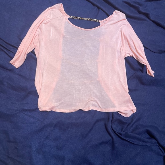 Light weight top mid sleeves back out with gold chain in the back LIGHT PINK/PEACH