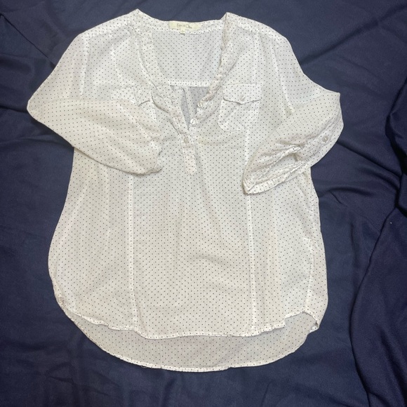 Lightweight top with three buttons down the middle polkadots black and white
