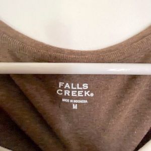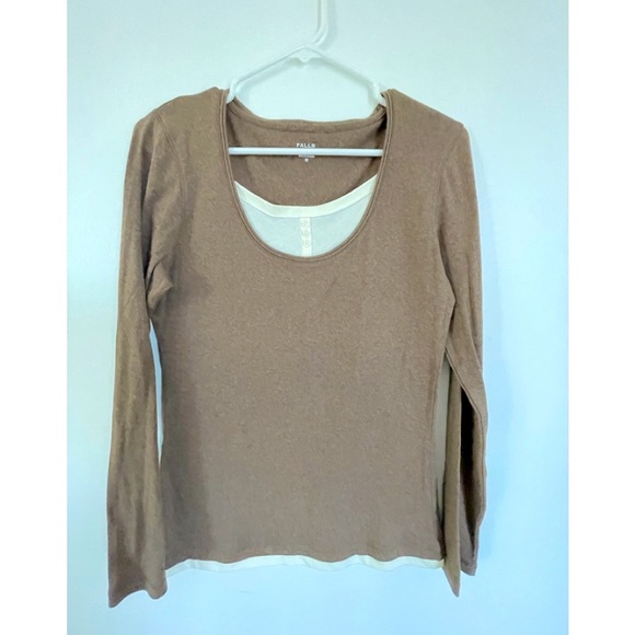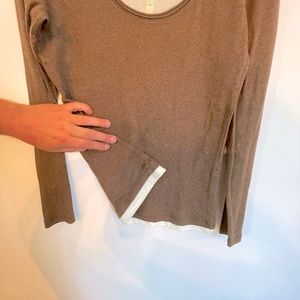 Woman’s pullover Tshirt/top Brown with white neck and wrist. Size Med.