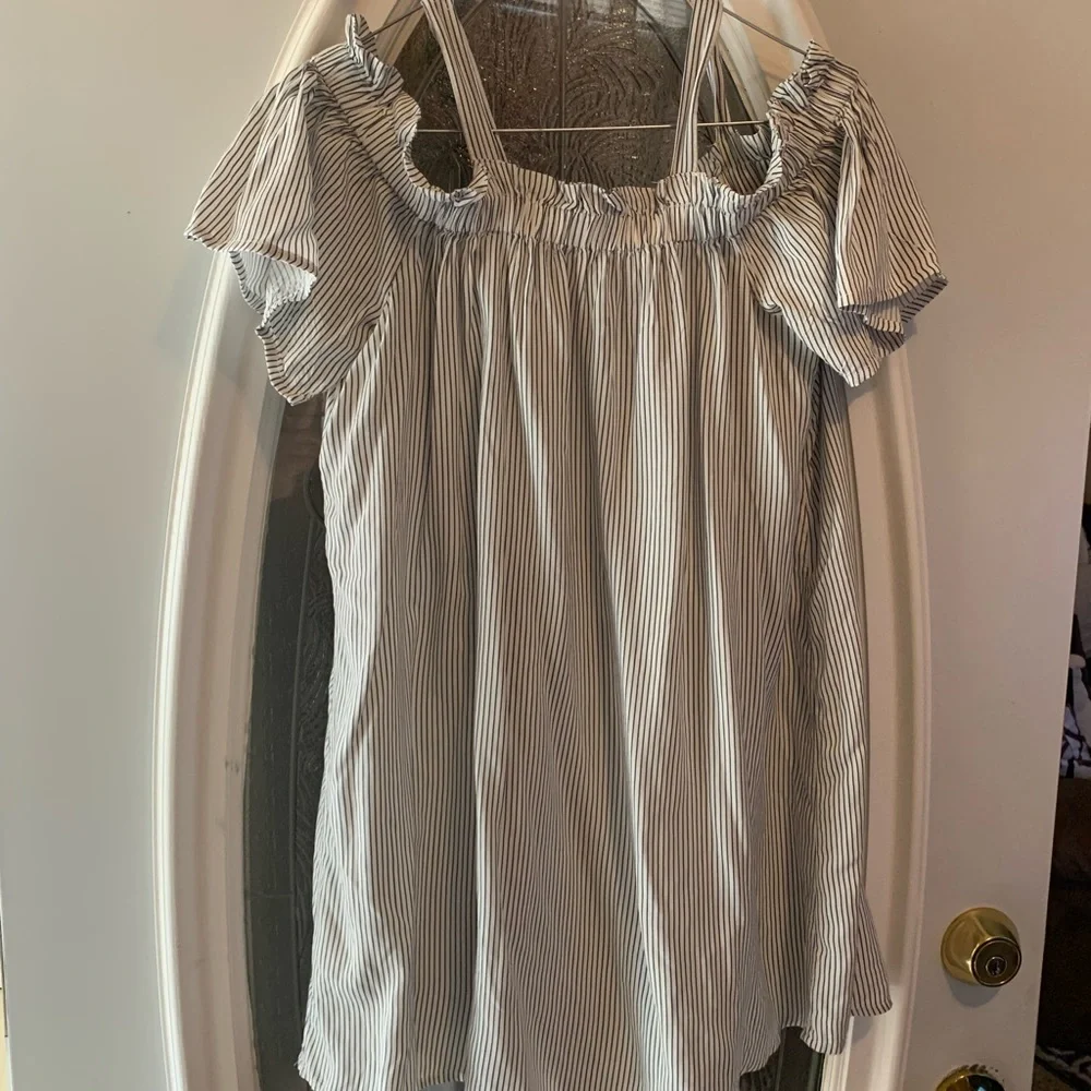 Cold shoulder top, never worn in excellent condition! Whit and blue stripes.