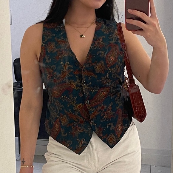 Paisley men vest turned feminine. Has tie in the back to pinch waist
