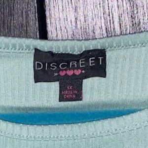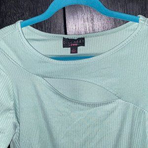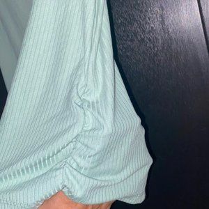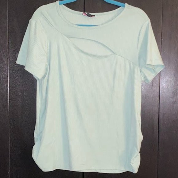 Sage green top with a lil cut out in the chest and side rouching
