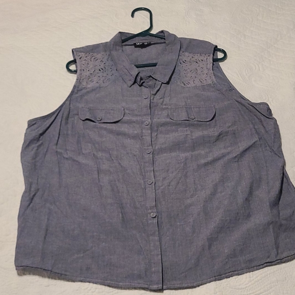 Looks like denim, but more of a linen material sleeveless tank blouse