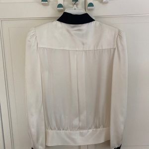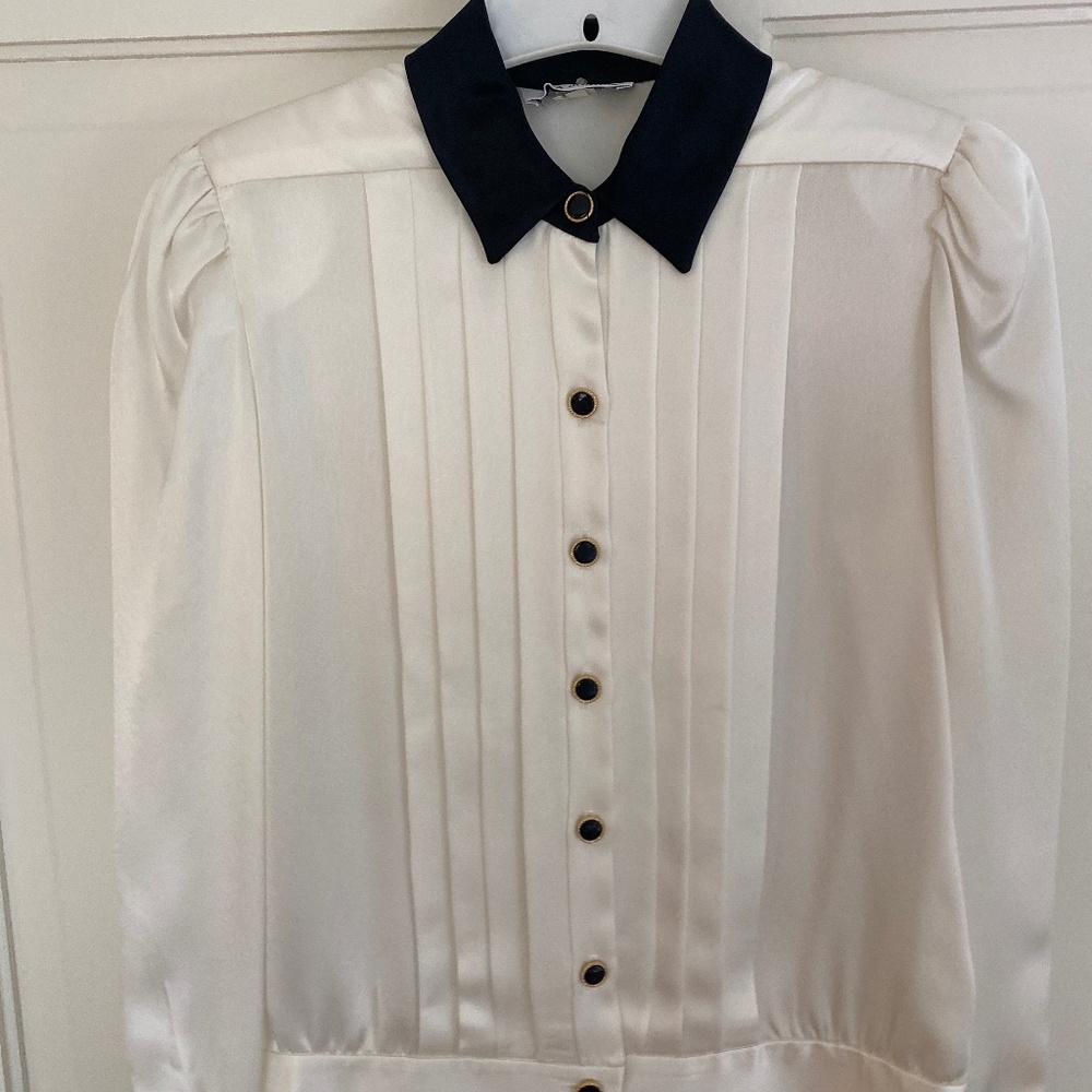 Long sleeved silk top with padded shoulders. Looks great with black flowing pants or slim skirt. Dry clean only.