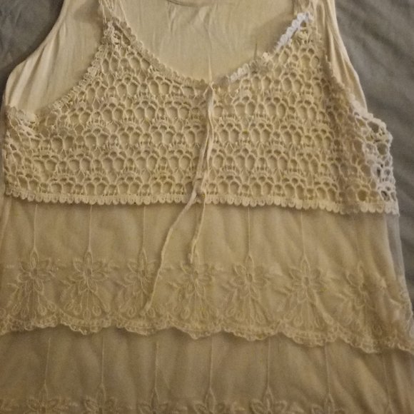Eggshell colored top with lace bodice