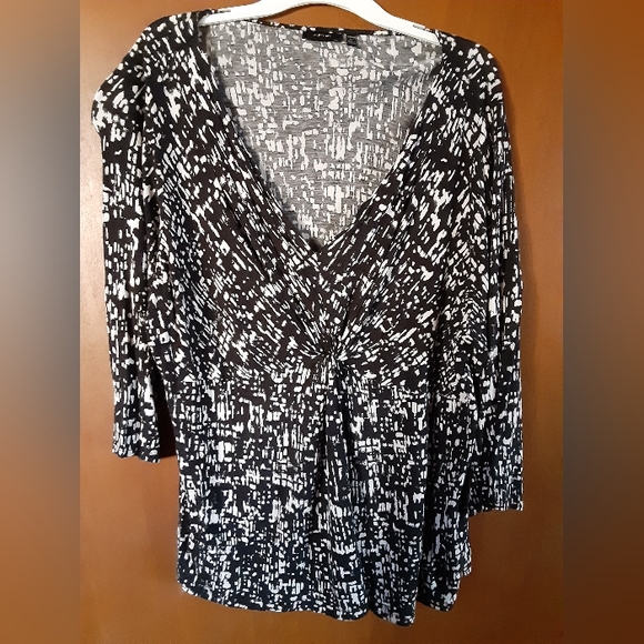 3/4 sleeved fun, low cut, blouse with gathered knot at waist.
