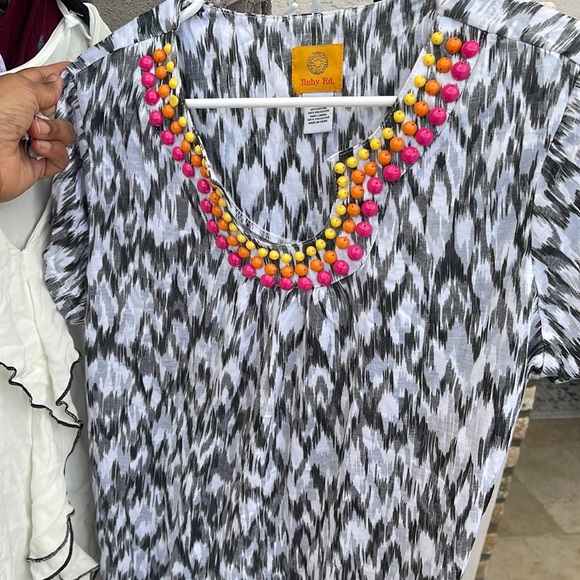Beautiful top.. Stunning neck details.. lovely chevron print.. Breezy airy and comfy. Perfect summer top