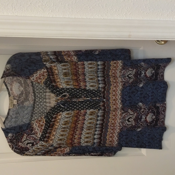 One World Paisley top with tie detail and 3/4 length sleeves - generous sizing