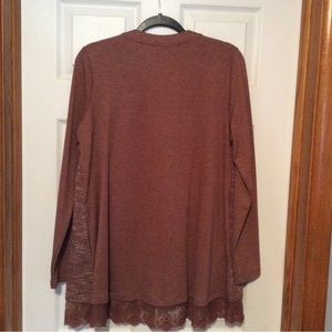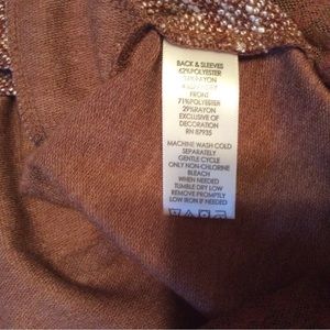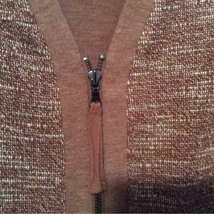 Logo rust and white tweed top with ruffle on hem. Size M, 31 in long, long sleeve, zippered front, new without tags ( Logo doesn’t come with tags).