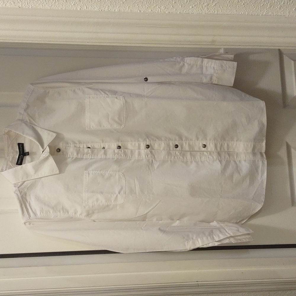 White Button Up Skirt with Roll-up Long Sleeves - size small