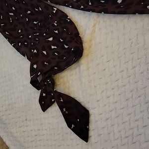 Burgundy and blue cheetah print blouse, high low, 3/4 tied sleeves