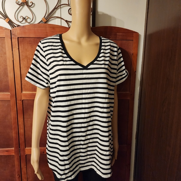 Striped short sleeve top with v neck