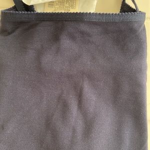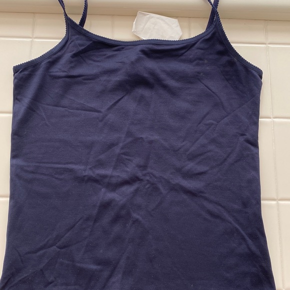 Here is a brand new Abercrombie and finch navy blue tank in a size small. This has a lot of stretch. Navy happens to be a color very difficult to find in a nice cami. Just so you’re aware the neck goes pretty much straight across. There is no V or scoopneck. I do love the trim.