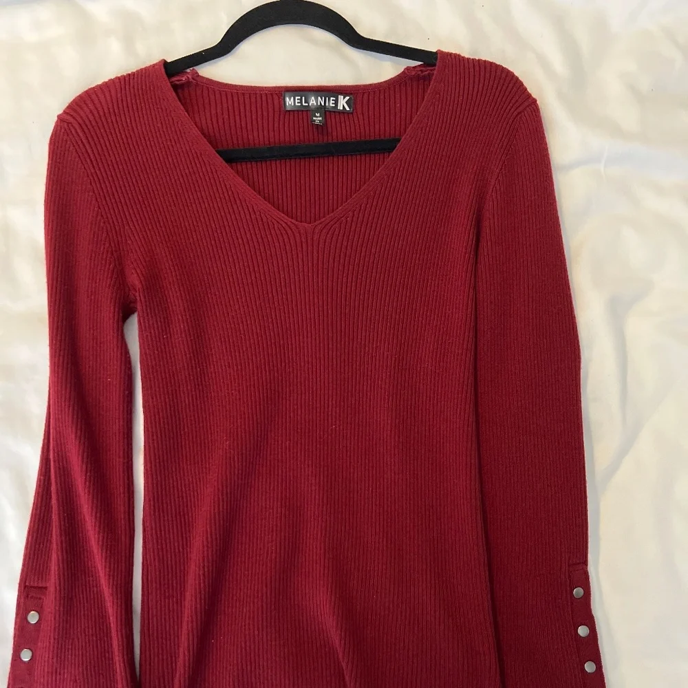 Maroon sweater that was some stretch. Sleeve are bell with buttons
