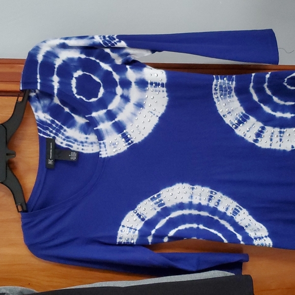 Royal Blue with white and blue circles Rhinestones on the front Size S