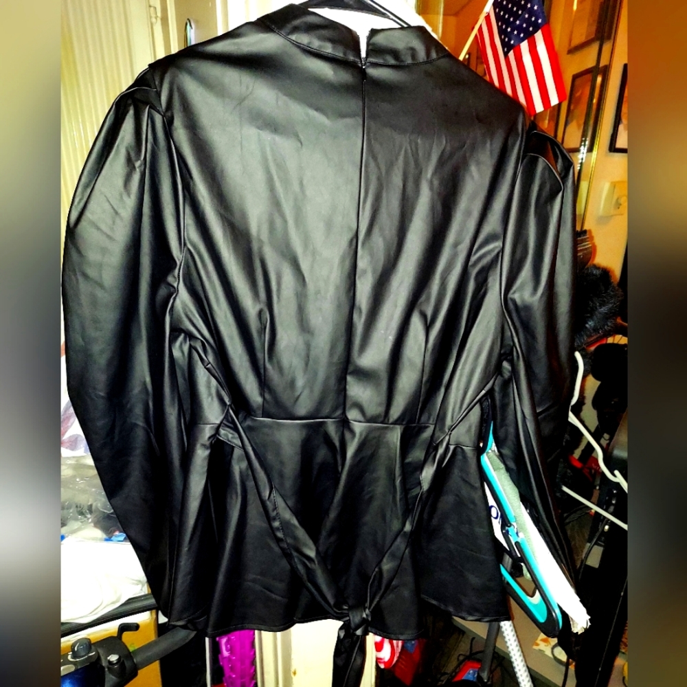 Luvly waist length flare faux top. Zip up at the back of the neck with a wrap around belt can be worn without the belt. Sleeves are long length also