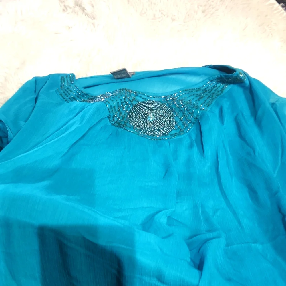 @msmaiamaitai76 thanks you as well its a beautiful top its xlarge but it's flare very elegant with some beading on the chest and if you like other stuff from my shop I can give you discount and if you buy 2 items or more you will get a very nice top or jewelry with it for free