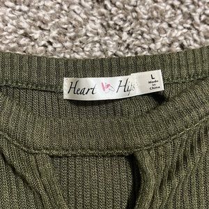Olive off the shoulder top. Never worn. Purchased from a local boutique. I would say this runs small! More for a small/medium.