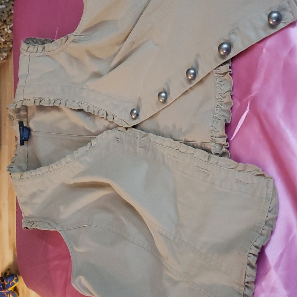 WESTBOUND SHORT SLEEVE TOP WITH RUFFLES. 6 GOLD BUTTONS