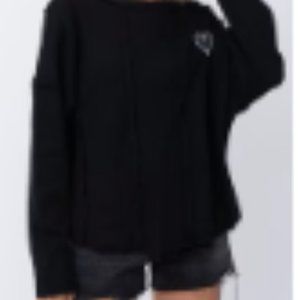 New! Frayed hem with slits on side. Take this to the football game or lunch with friends. You will be comfy and cute. This is not too heavy.