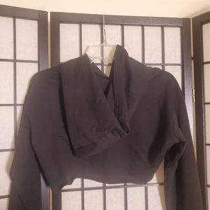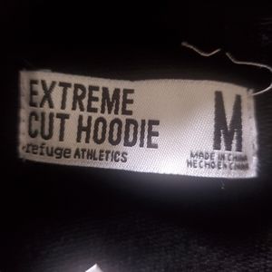 Sportish crop top hoodie. The crop is cut high in the chest area. You can wear a cami or shirt underneath to rock in your own way