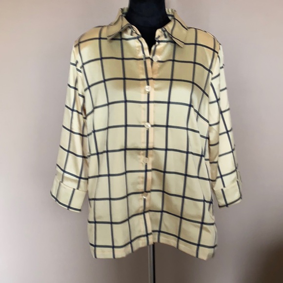 Louis Dell’Ollo Black/Yellow Top, size 12, removable shoulder pads, two functional front pockets,This is a casual/classy top. Never worn
