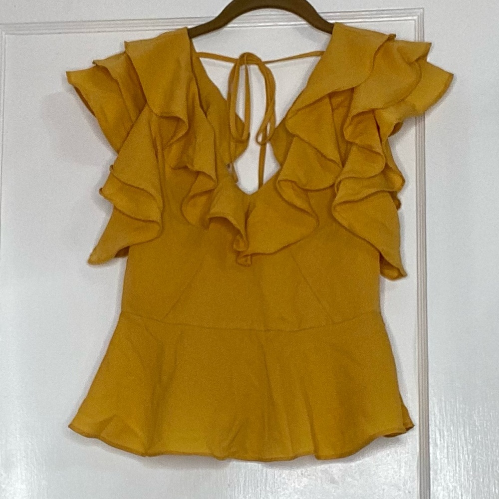 Yellow peplum top Zipper and a tie in the back Ruffles around neck and arm