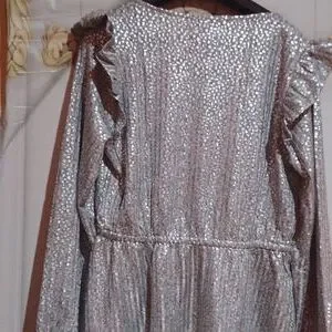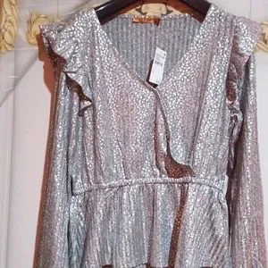 Ribbed Foil Print Surplice Top BELLDINI