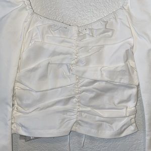“Fool 4 U Top” purchased from Hope’s as part of the Ashlyn Collection. White long sleeve top featuring flowy sleeves that button cuff at the wrist. Front laces up and is fully adjustable. Both the front and the back feature a ruching detail. Brand new with tags and open to offers.