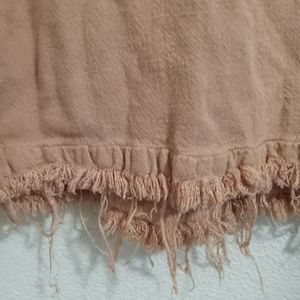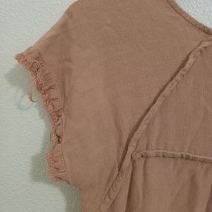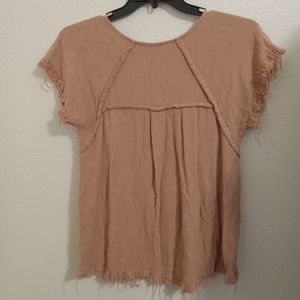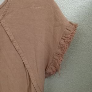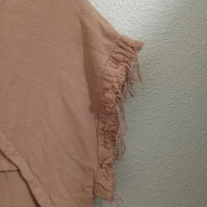 Women's Umgee Peach Short SleevesTop with Fringes at Sleeves and Hems Pre-Owned