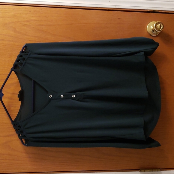 Dark green top with open shoulders, perfect with jeans for a casual look. Gently used.