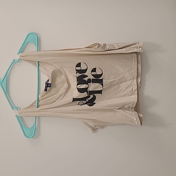 tan shirt with black letters in the front Love&Lie