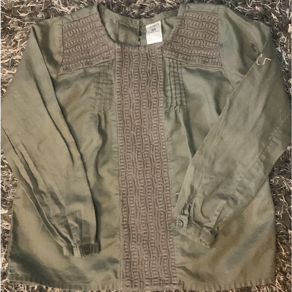 Embroidery around the shoulders, and down the front with cute little buttons at the end of the sleeve