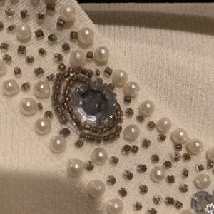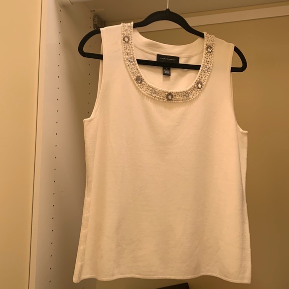 Beautiful cream embellishes sleeveless top, very flattering, barely worn
