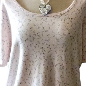 Pretty in pink pull over top with lots of stretch. Pretty floral design. Measurements listed. Fits sizes 1X-2X