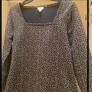 J crew fun navy blue with small flowers, long-sleeved square neck, comfortable top