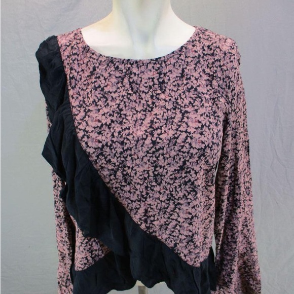Top . pretty top with cross cross over black ruffle . 100% modal. Long sleeves.