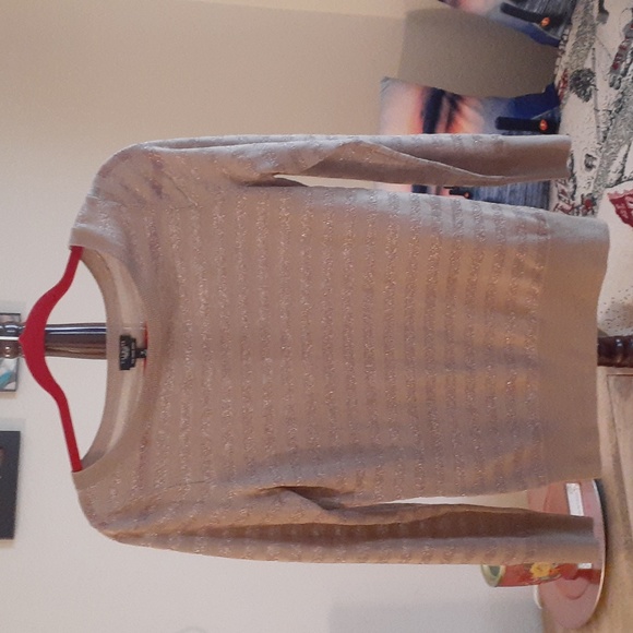 top tan and gold strips long sleeves size M like new. airy material Talbots