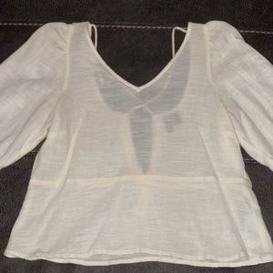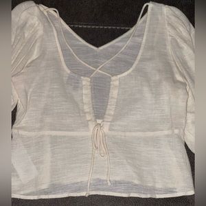 Size small top. It’s a bit see through, cute with a bralette underneath. Only worn once.