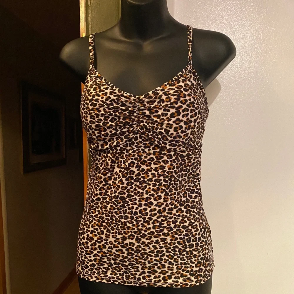 Brand new top. Brown, white, black. Criss cross black. Jewelry not included. May need steaming due to transportation/storage.