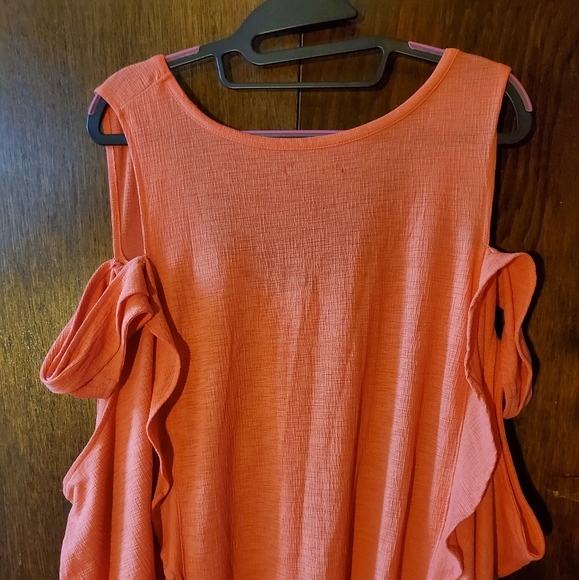 Gently used, Roamans, plus sized orange ish colored. size 34/36 4X off the shoulders tunic. light weight, smoke and pet free home.