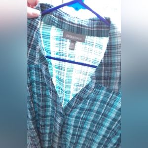 Turquoise Madras blouse. Button up front, V neck, size 3X. Faded Glory.