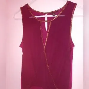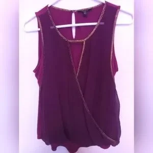 Elegant Ella Moss top, plum color gold trim. no stains or holes in very good clean condition. light weight great to wear for any occasion!