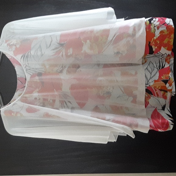 super cute top floral white sheer overlay