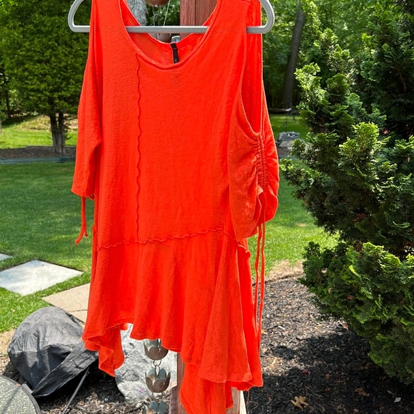 Awesome shirt peekaboo sleeves with ties. Scoop neck. Made in USA 100% linen.