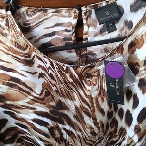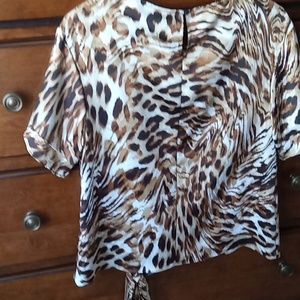 short sleeve stlkey top with a tie on the side makes it look gorgeous. new. never worn.