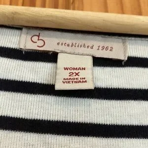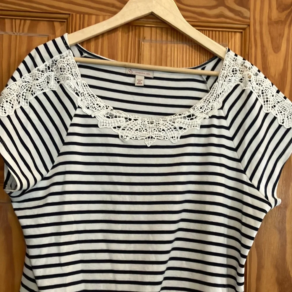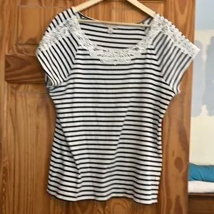 Navy and White striped shirt with beautiful lacy on neck and sleeve