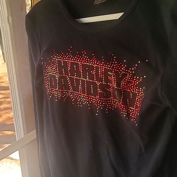large Harley Davidson long sleeve tshirt material with sparkles outlining Harley Davidson